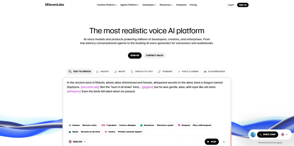 - Play.ht: جيد للصوتيات المتعددة المتحدثين، مع تحكم في العواطف، لكنه أقل دقة في اللهجات.